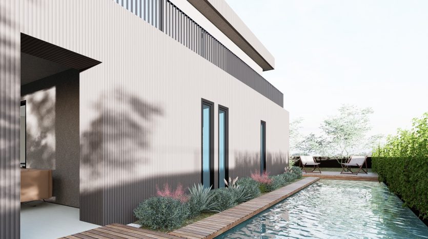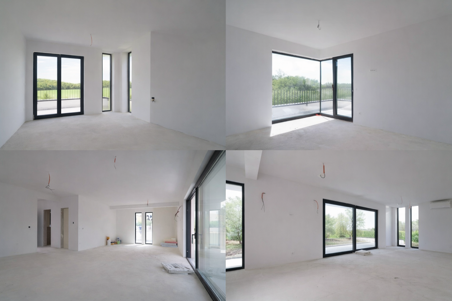 - Oprema: Vgrajen je parket v sobah in stopnišču, v kopalnicah in ostalih prostorih so tla iz mikrocementa, sanitarna oprema (tuš kabina, wc školjka, umivalnik), opremljene spalnice in tudi kuhinja, ki je vključena v ceno.