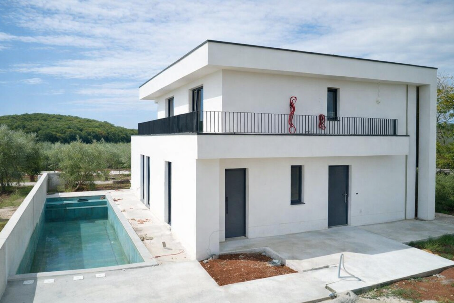 - Okolica: Okolica bo za zelenela, posajene so oljke, napeljan je namakalni sistem…